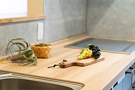 高圧メラニン化粧板を採用した、キズや汚れに強いワークトップ。今まで以上の多彩なカラーバリエーションからお選びいただけます。