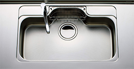 特殊コーティングを使用した通常より幅の広いシンク。汚れやキズがつきにくく、水の落ちる音を抑えるなど、高い機能性があります。