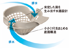 強いうずを起こして汚れを流します。またシンプルな構造で、カンタンゴミ捨て&お掃除。