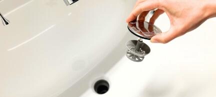排水口とその奥をスポンジでカンタンお掃除。スムーズに水を通す斜め形状のヘアキャッチャー付。