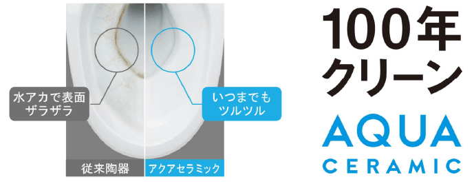 「アクアセラミック」従来の陶器ではできなかったガンコな水アカも汚物も落とせる、お掃除ラクラクな衛生陶器です。