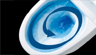 強力な水流が便器のすみずみまでまわり、少ない水でもしっかり汚れを洗い流します。