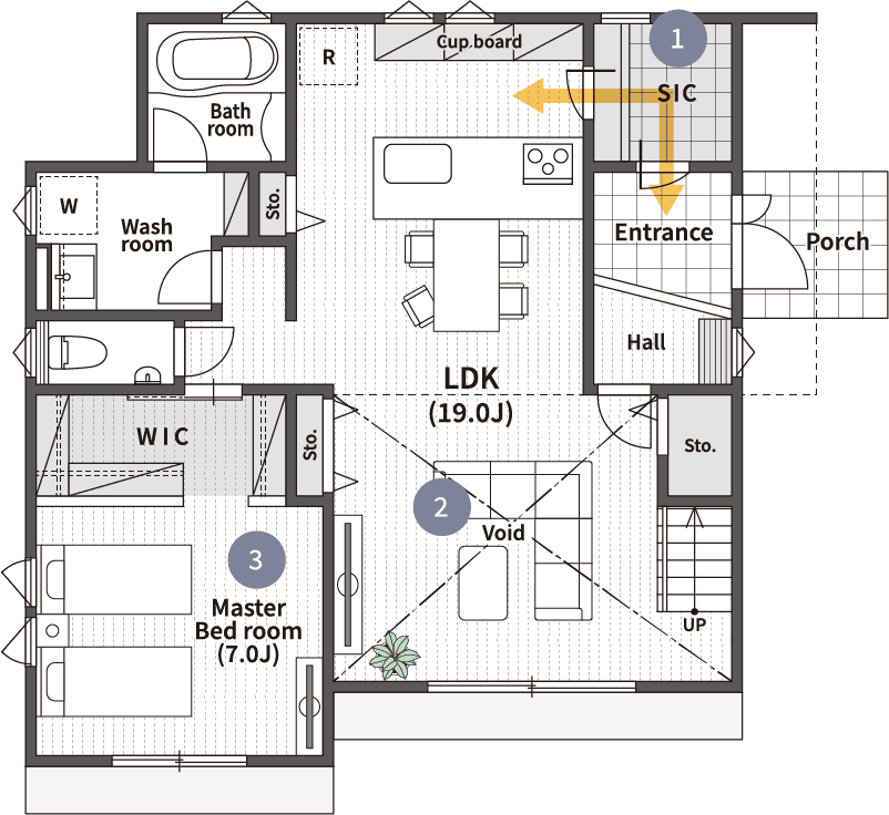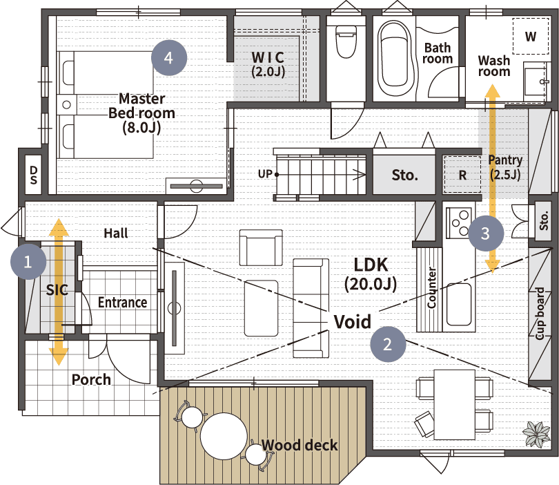 アメリカ西海岸のビーチハウスをイメージ。光や風を取り込んだ居室は、リゾートで過ごすような味わい。サーフィンやアウトドアが趣味の方にオススメ。
